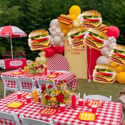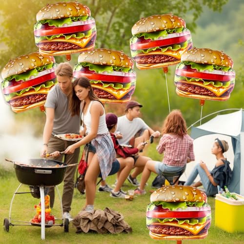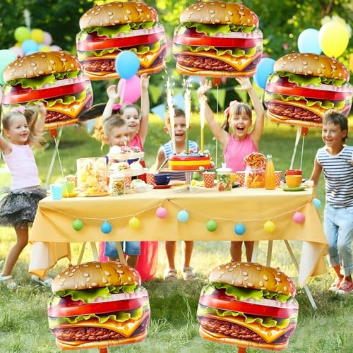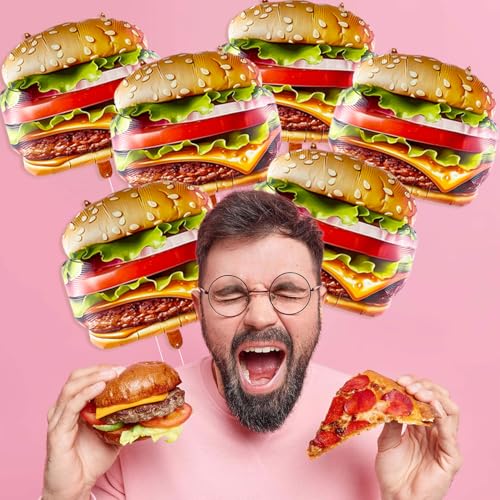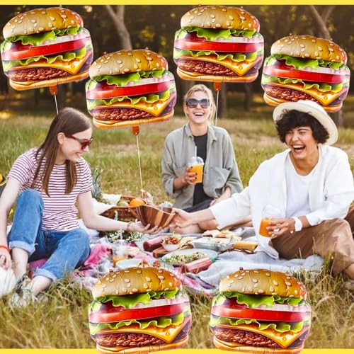 6 PCS Hamburger Balloons Food Balloons for Picnic, BBQ, Carnival, Fast Food Snacks Party Decorations