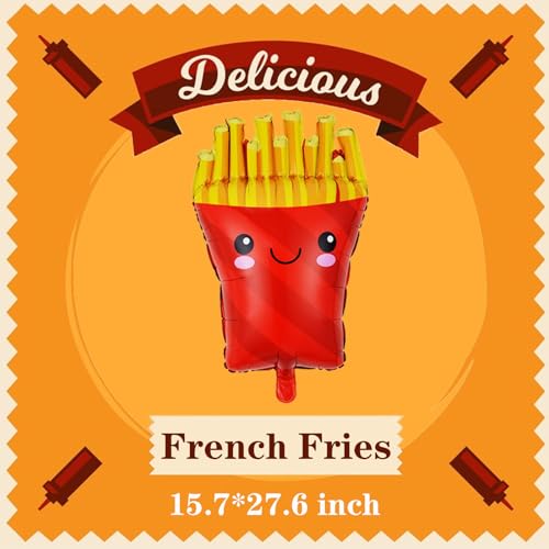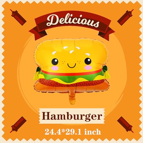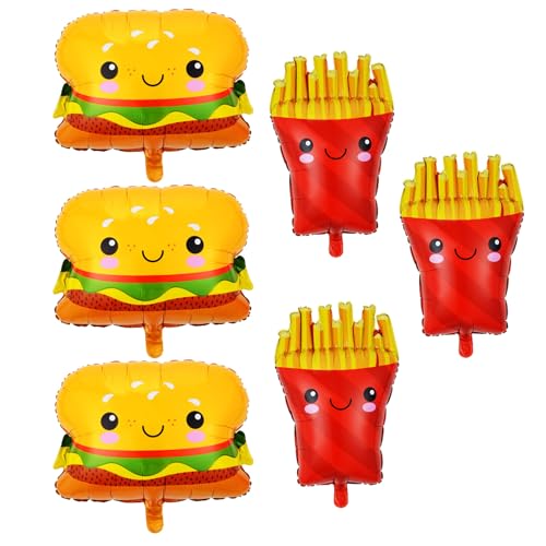 6 Pcs Hamburger Balloons French Fries Balloons Food Themed Foil Aluminum Balloon for Baby Shower Birthday Wedding Fast Food Snacks Decorations Supplies