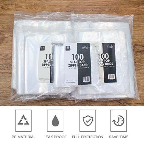 100 Count Large Zip Plastic Bags for Storage Bulk 14"×20", 3 Gallon | 2 mil Thick Reclosable Jumbo Bags for Household, Clothes, T-shirts Packing