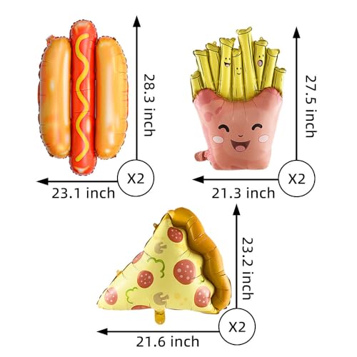 6pcs Giant Popcorn Food Mylar Balloons, 25inch Ice Cream Balloon Popcorn Balloons Hot Dog Pizza balloon for Hawaii Luau Balloon Party Decorations