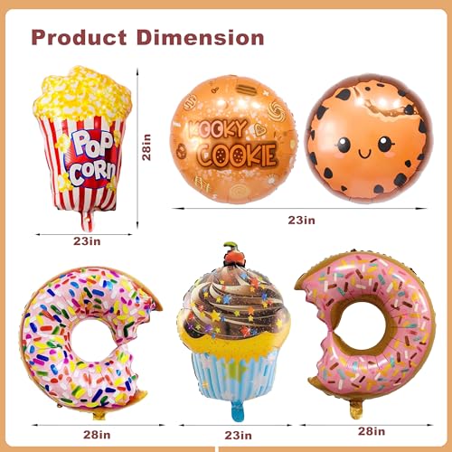 6Pcs Snack Balloons,Chocolate,Cookie,Popcorn,cake Balloons for Themed Parties Birthday Celebration Decoration,Snack Birthday theme Party Supplies