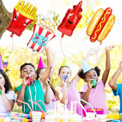 8pcs Food Themed Balloons, Aluminum Foil Food Balloons French Fries Popcorn Pizza Hamburger Hot Dog for Themed Parties Birthday Celebration Decoration