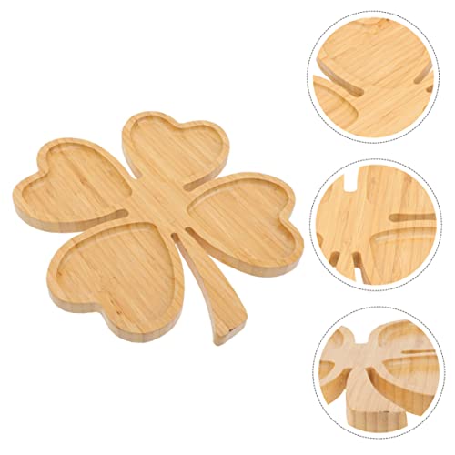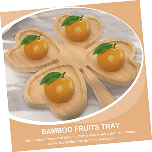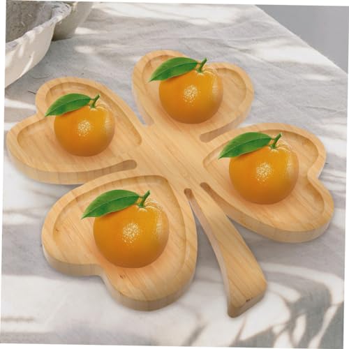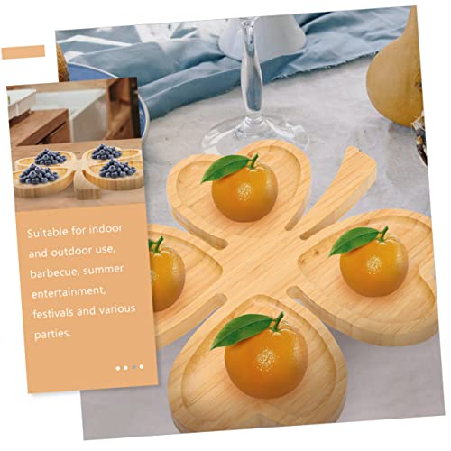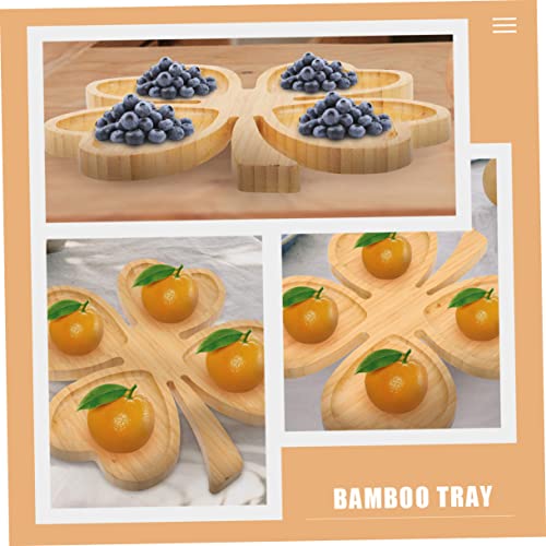 ABOOFAN Bamboo Serving Tray Four-leaf Clover Shape Fruit and Dessert Display Plate Sturdy Bamboo Dish for Sushi Salad and Snacks Easy to Carry and Match Any Table Setting