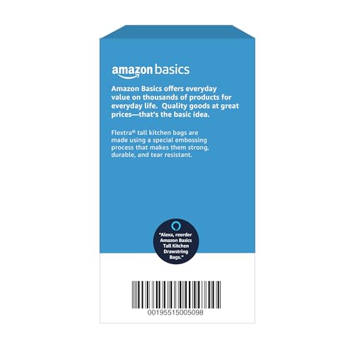 Amazon Basics Flextra Tall Kitchen Drawstring Trash Bags, 13 Gallon, 50 Count, Tear-Resistant, Unscented