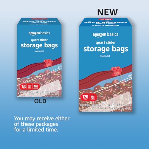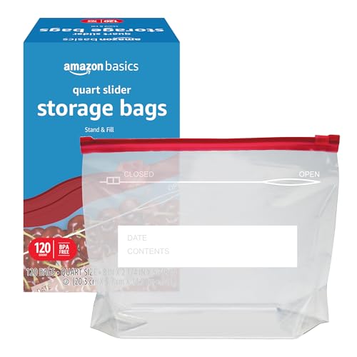 Amazon Basics Slider Quart Food Storage Bags, BPA Free, 120 Count (Previously Solimo)