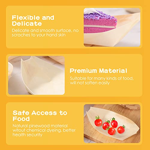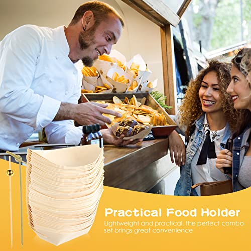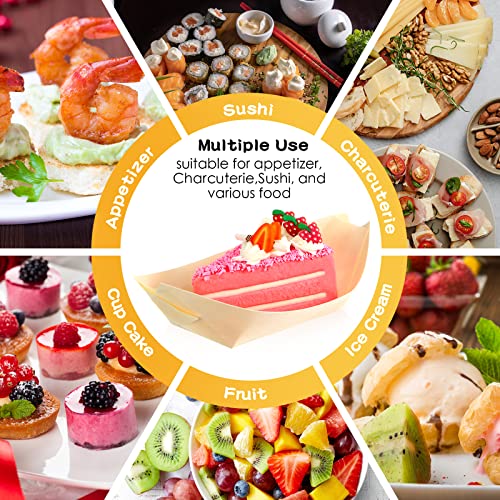 Amyhill 400 Pcs Disposable Bamboo Wooden Sushi Boat Plate Bamboo Cocktail Pick Set Include 200 Pcs 5" Appetizer Plates Dishes Appetizer Serving Tray and 200 Knot Skewers Gold Pearl Food Sticks