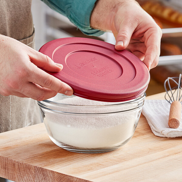 Anchor Hocking 1.5 Qt. Glass Mixing Bowl with Red Plastic Lid 91856L20 - 2/Set
