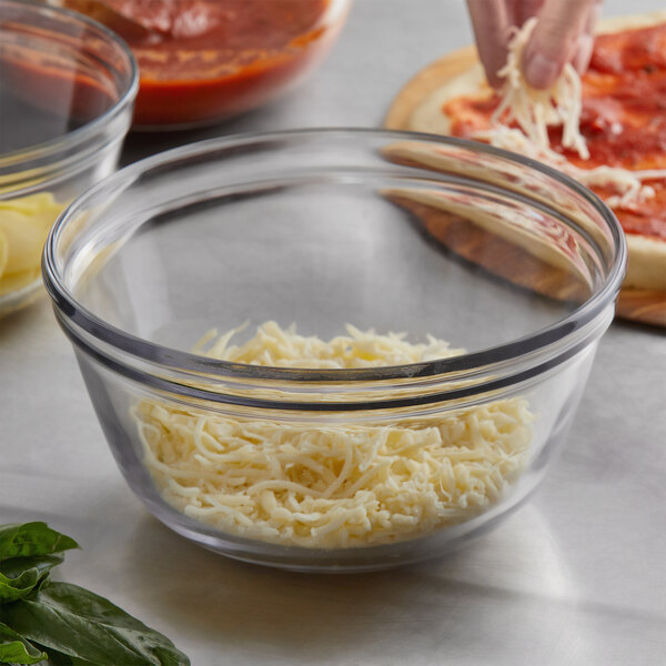 Quantity: 1/Each | Shipping Weight: 2.6 lb. | Height: 4 1/4 Inches | Bottom Diameter: 4 5/8 Inches | Top Diameter: 8 5/8 Inches | Capacity: 2.5 qt. | Color: Clear | Features: Dishwasher Safe Lead Free Made in America Microwavable Oven Safe | Finish: Smooth | Material: Glass | Maximum Temperature: 425 Degrees F | Shape: Round | Type: Bowls | Weight: Standard
