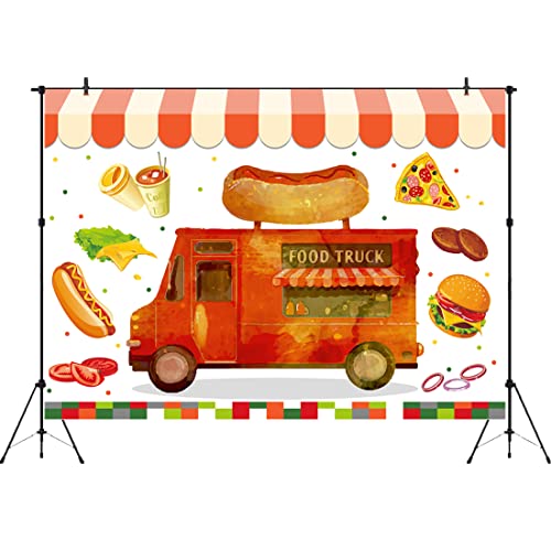 Aperturee Food Truck Backdrop 7x5ft Hot Dog Pizza Hamburger Coffee Truck Shop Photography Background Birthday Baby Girl Kids Baby Shower Banner Party Decoration Photo Booth Props