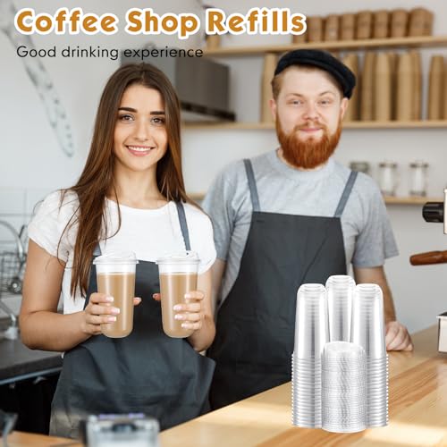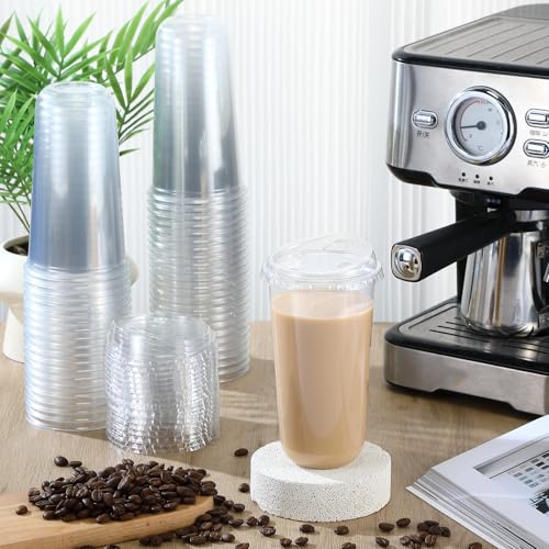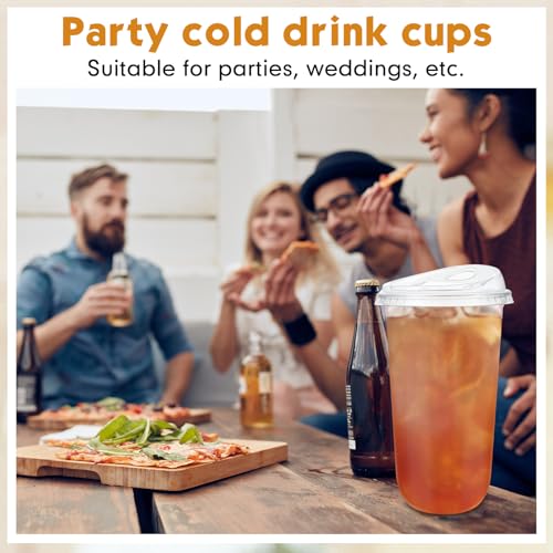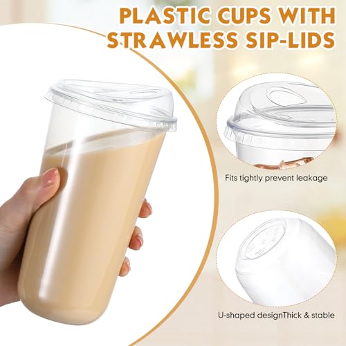 Baderke 100 Pcs Plastic Cups with Sip Lids Round Bottom Disposable Plastic Coffee Cups with Lids Clear Strawless Crystal Mugs for Iced Coffee Smoothie Cold Beverage Party Catering Supplies (20 oz)