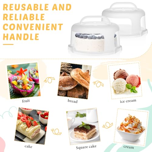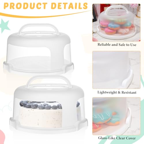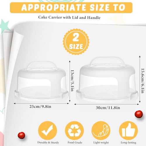 Baderke 2 Pcs Cake Carrier with Lid 10''/ 8'' Cake Holder Plastic Stand with Lid Handle Round Container Portable Carrier with Cover Boxes for Cupcake Pie Serving Transport(White)