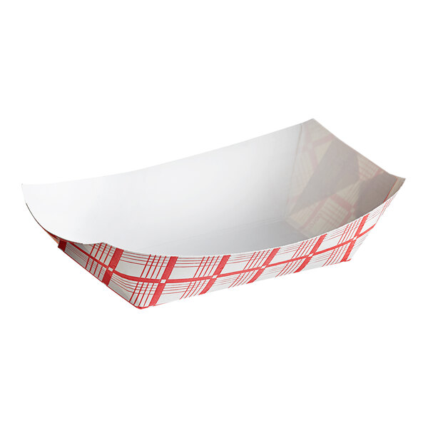 Quantity: 250/Pack | Shipping Weight: 3.48 lb. | Height: 1 1/2 Inches | Bottom Length: 3 15/16 Inches | Top Length: 6 3/8 Inches | Bottom Width: 2 1/2 Inches | Top Width: 4 1/2 Inches | Capacity: 1 lb. | Color: Brown | Design: Unprinted | Features: BPA Free Grease-Resistant Made in America | Material: Paper | Number of Compartments: 1 Compartment | Shape: Rectangle | Type: Boat Trays