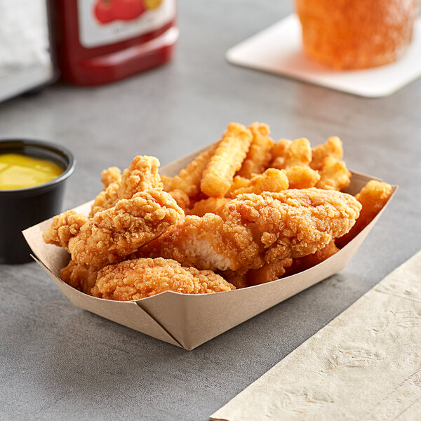 Bagcraft Packaging 300696 1 lb. EcoCraft Grease-Proof Natural Kraft Food Tray - 250/Pack