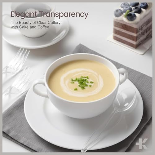 Bakken Disposable Cutlery Set 360 Pieces Spoons, Heavy Duty Plastic Silverware, BPA-Free Food-Grade Materials, Heat-Resistant, Reusable Utensils for Parties, Catering, BBQs, and Everyday Use, Clear