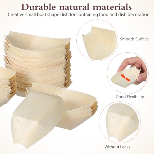 Bamboo Wooden Boat 50Pcs Disposable Wood Serving Boats Plates Trays Mini Sushi Boat Sushi Serving Tray Food Container for Catering Home Use