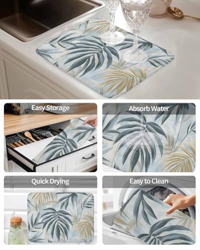 Brand Name: mignagrzc2 | Color: Mist Blue Gray Green Light Gray | Included Components: No | Item Type Name: Dish Drying Mats | Manufacturer: mignagrzc2 | Material Type: Polyester | Pattern: Botanical MGZ6736 | Product Care Instructions: Dishwasher Safe, Hand Wash Only | Shape: Rectangular