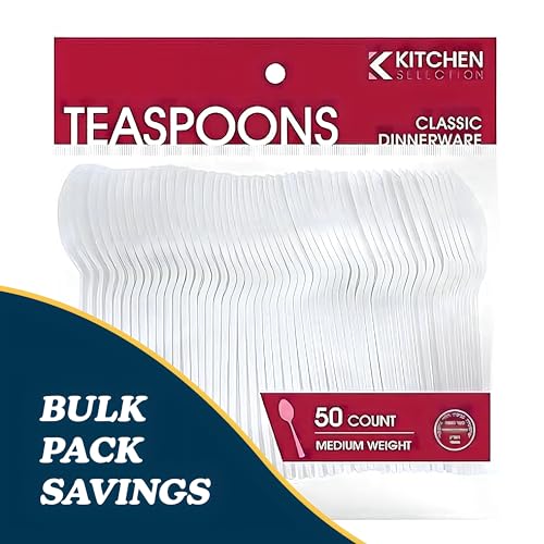Basic Cutlery Collection 50-Count Medium Weight White Plastic Teaspoons | Disposable & Convenient for Parties, Picnics, Events