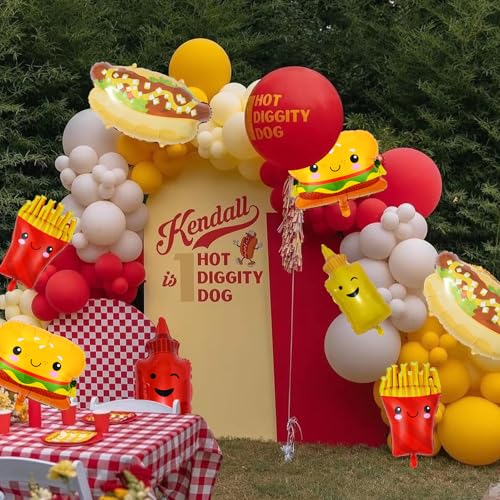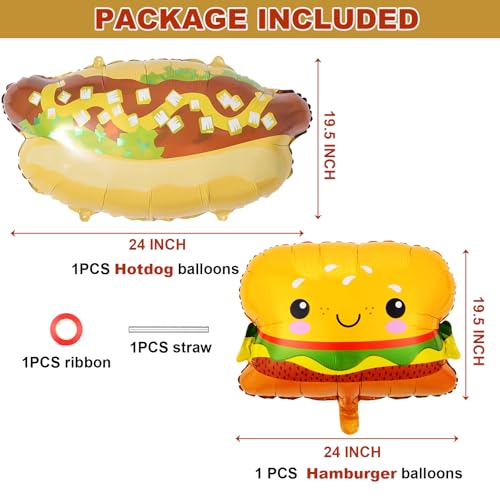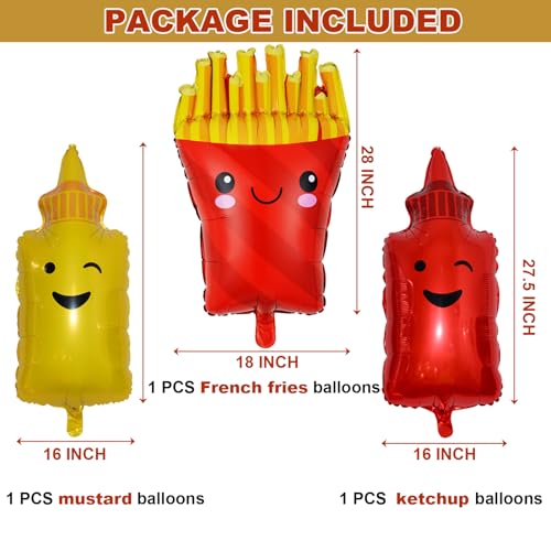 BBQ Party Balloons,5Pcs Food Themed Foil Balloons Hot Dog Hamburger Ketchup French fries Mustard Bottle for Picnic Snacks Baby Shower Birthday Party Decorations Supplies