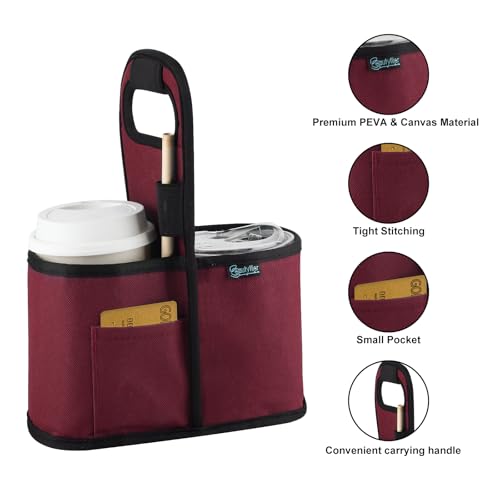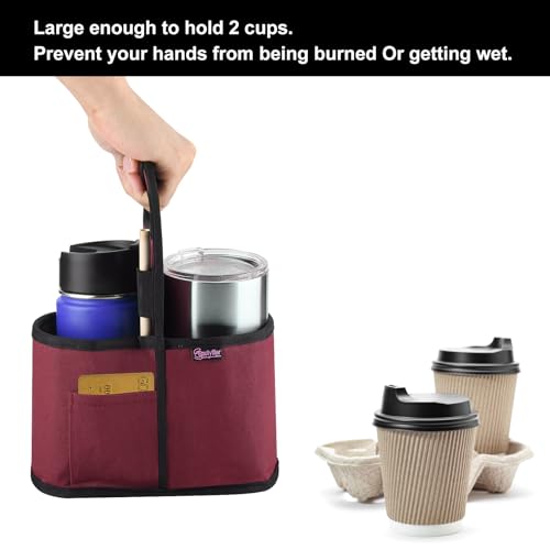 Beautyflier Drink Carrier with Handle for Delivery Reusable Insulated Coffee Cup Carrier Portable 2 Cup Holder with Handle Organizer Tote Bag for Hot & Cold Drinks, Red