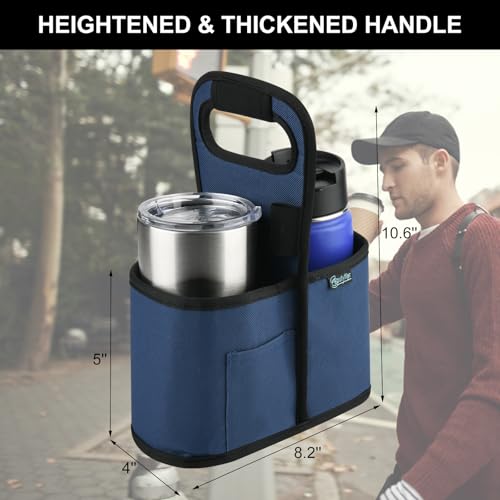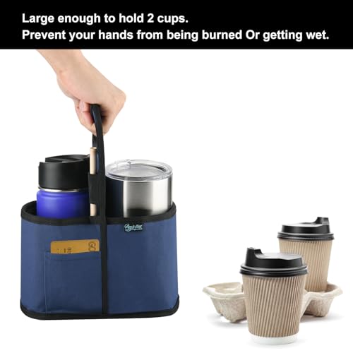 Beautyflier Drink Carrier with Handle for Delivery Reusable Insulated Coffee Cup Carrier Portable Cup Holder with Handle Organizer Tote Bag for Hot & Cold Drinks (2 Cup, Blue)