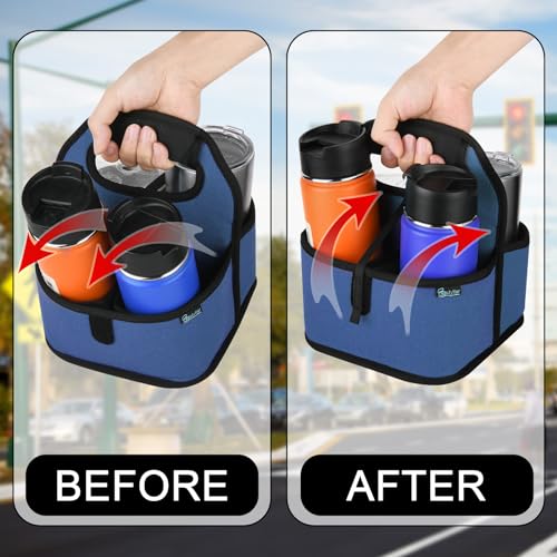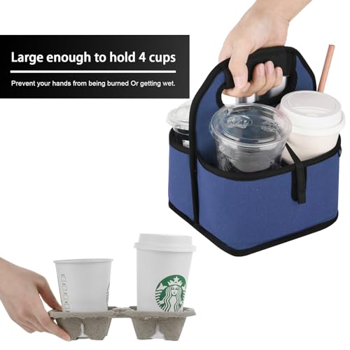 Beautyflier Reusable Insulated Coffee Cup Carrier, Portable Drink Carrier for Delivery, Drink/Cup/Coffee Holder with Handle for Take-Out Coffee (Blue)