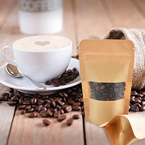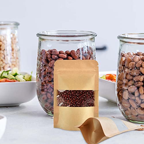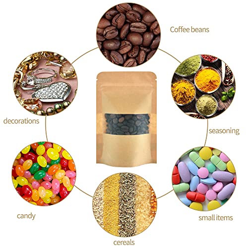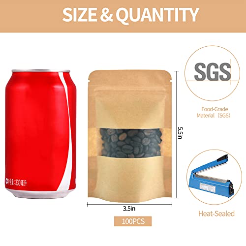 BEISHIDA 100 Pack 3.5 x 5.5 Inch Kraft Paper Resealable Bags with Clear Window, Small Airtight Heat Sealable Packaging Bags for Storage Sample Seed Spice(Brown)
