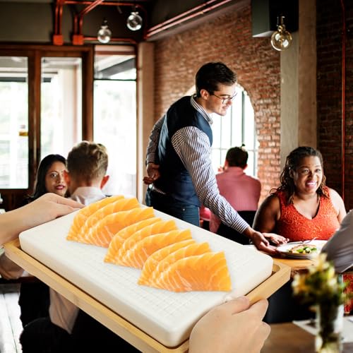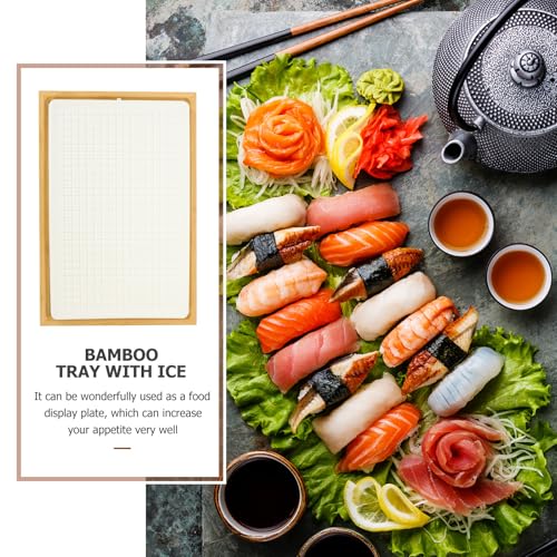 BESPORTBLE Wear-resistant Natural Sushi Plate with Ice Tray and Cooling Sashimi Serving Board for Salmon and Sashimi Presentation, for Home and Restaurant Use