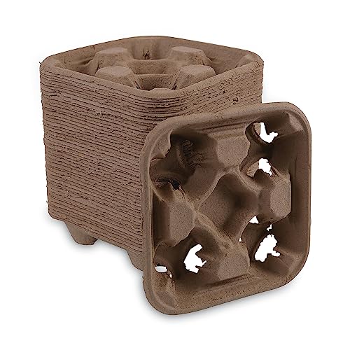 JEUIHAU 100 Pack Pulp Fiber Drink Carrier Tray for 8-24 oz Cups, Biodegradable Carrier for Hot or Cold Drinks, Ideal To Go Drink Holder for Car Food Delivery
