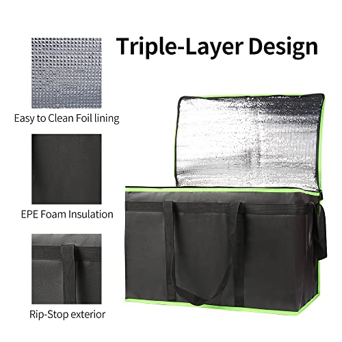 Bodaon Insulated Food Delivery Bag, XXX-Large Insulated Pizza Delivery Bags, Black with Green Edge, 1-Pack