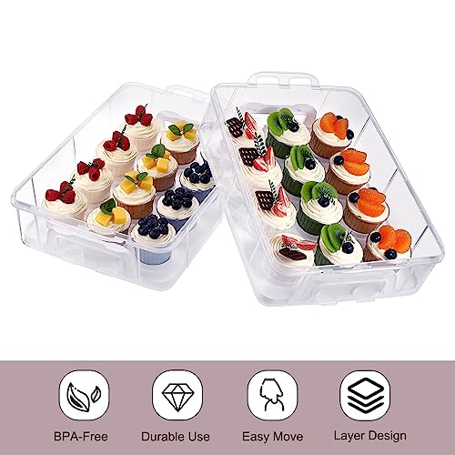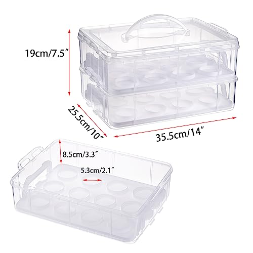 BTSKY 2 Tier Clear Plastic Cupcake Holder with Lid & Handles, Portable Cupcake Carrier for 24 Cupcakes, Stackable Cupcake Storage Container with Convenient Slot Tray Large Plastic Storage Box, White
