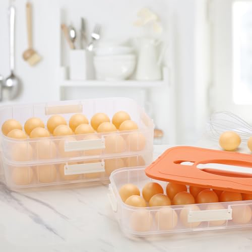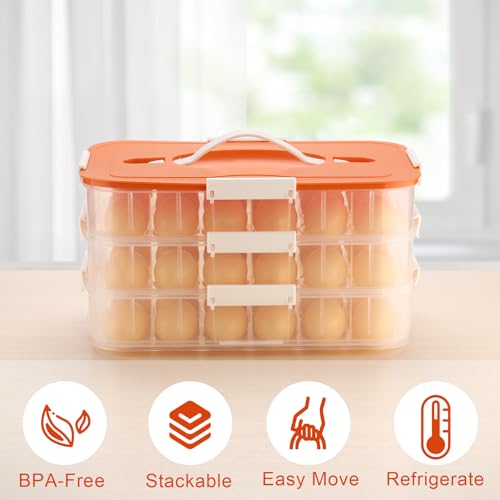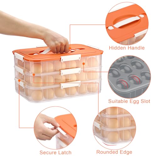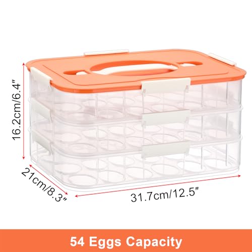 BTSKY Deviled Egg Platter with Lid, 3-Layer 54 Slots Deviled Eggs Carrier, Clear Portable Egg Holder for Fridge Reusable Deviled Eggs Tray Carton Box for Easter and Party Favor (3-Layer, Orange)
