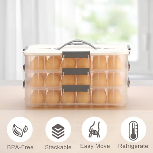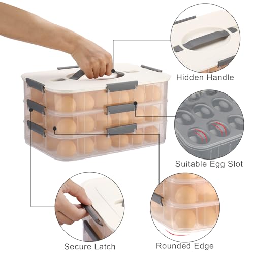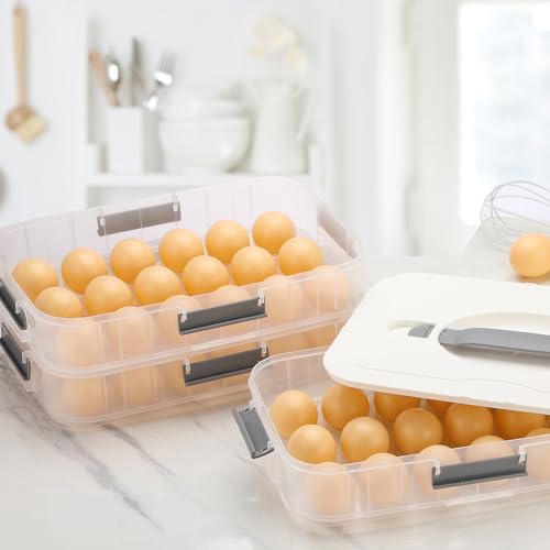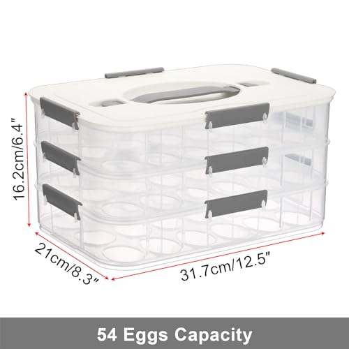 BTSKY Deviled Egg Platter with Lid, 3-Layer 54 Slots Deviled Eggs Carrier, Clear Portable Egg Holder for Fridge Reusable Deviled Eggs Tray Carton Box for Easter and Party Favor (3-Layer, White)