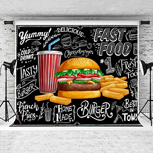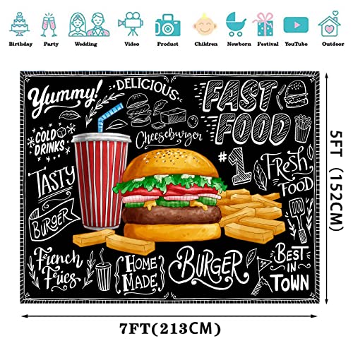 Burger French Fries Backdrop, 7x5ft Vinyl, Cooking Theme Fast Food Photogarphy Background for Children Photo Shoot Studio Props BJDWPR78