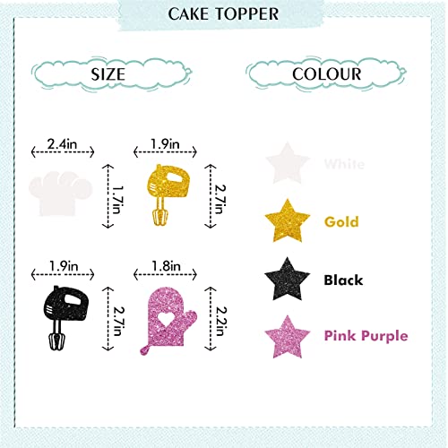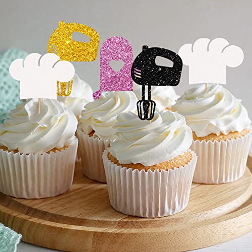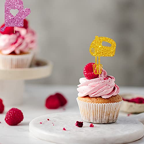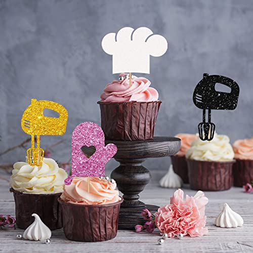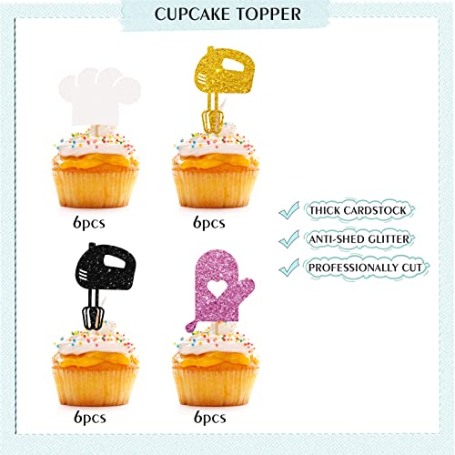 Cake Baking Theme Cupcake Toppers, Gold Glitter Little Baker Cupcake Picks, Cooking Cupcake Toppers for Little Baker Birthday/Baby Shower Party Decoration - 24pcs