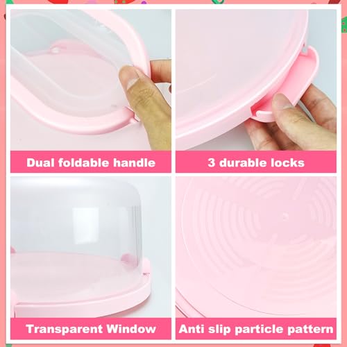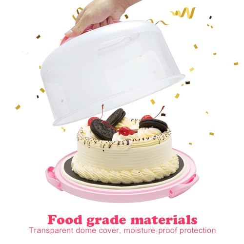 Cake Carrier with Lid and Handle, Fit 10’’ Cake Stand with Lid, Cake Transport Storage Container, Cake Containers Cover Stand with Lids, 3 Secure Side Closures (Pink)