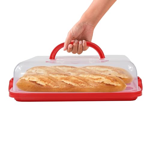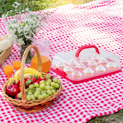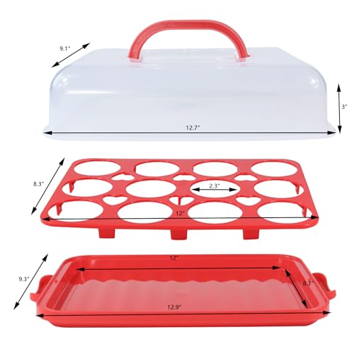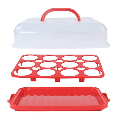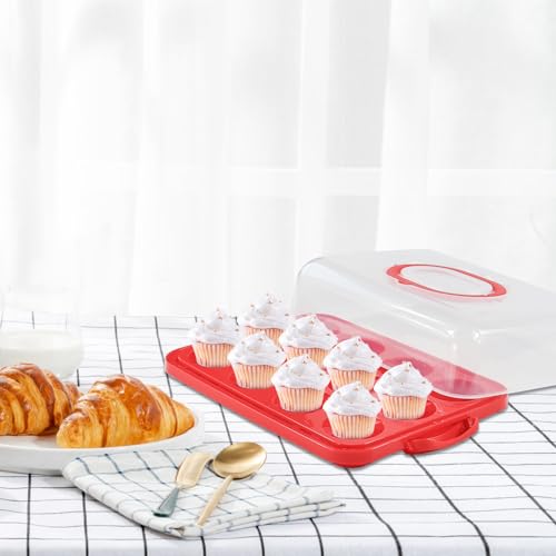 Cake Carrier with Lid, Cake Holder Cupcake Container for 12 Cupcakes 2 in 1 Portable Dessert Container for Pie Muffin Cobbler (Red)