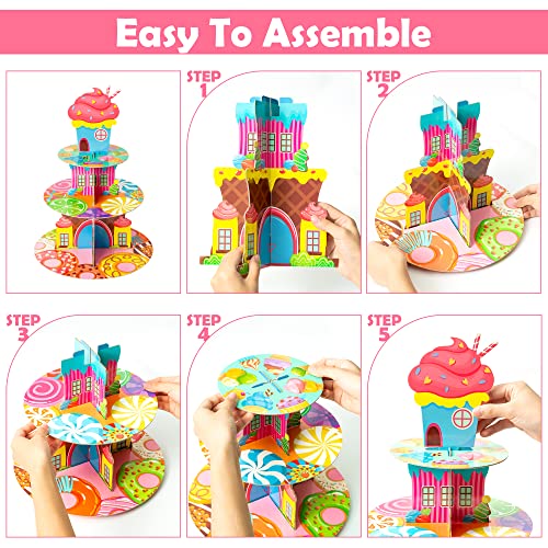 Candyland Cupcake Stand Decoration - 3 Tier Sweet Candy Cupcake Tower Cardboard Candy Donut Lollipop Ice Cream Dessert Holder for Girls Themed Birthday Party Baby Shower Table Decor Supply