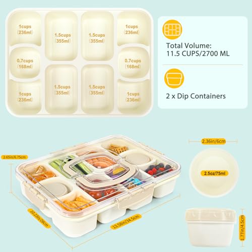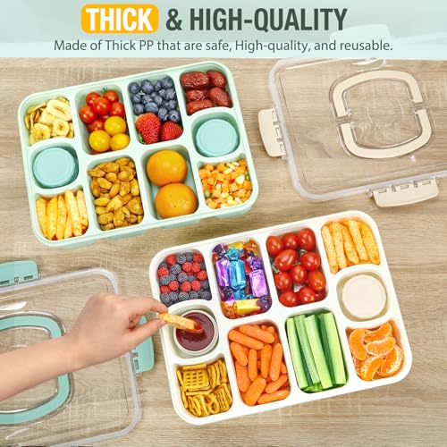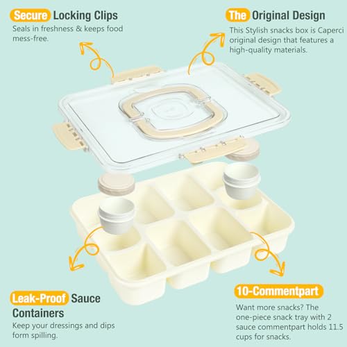 Caperci 2 Pack Snackle Box Container - Portable 10 Compartment Divided Snack Serving Tray with Lid & Handle, Built-in 4 Leak-Proof Sauce Containers, Dishwasher Safe, BPA-Free(Milky White)
