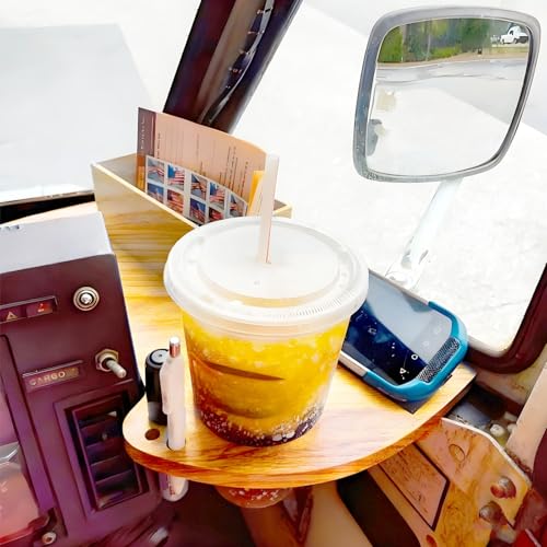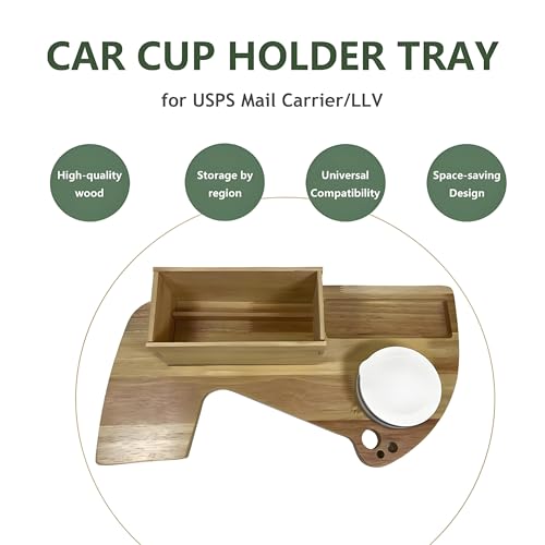 Car Cup Holder Tray for USPS/LLV Mail Carriers, Wooden Organizer with Scanner Slot, Pen Holder, Drink Holder, Postal Vehicle Accessory