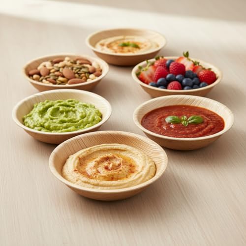 Charity Leaf Disposable Palm Leaf 2.5" Round Mini Bowl (25 pcs) Dipping Bowls | Bamboo Like| All Natural and Biodegradable | Charcuterie Boards, BBQs, and Parties