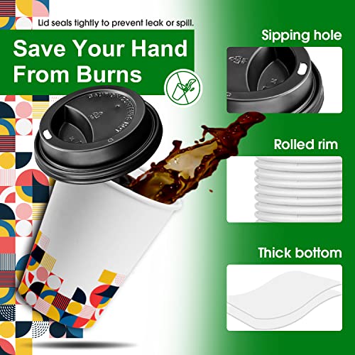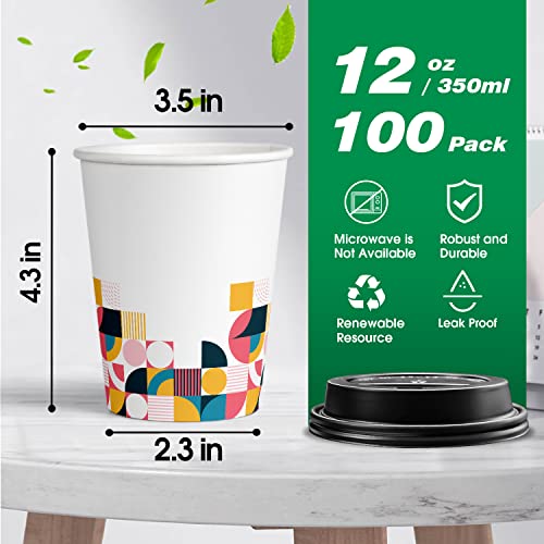 Charmount [100 Pack 12 oz Disposable Coffee Cups With Lids,To Go Thickened Paper Cups for Beverage Coffee Tea Hot Chocolate