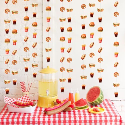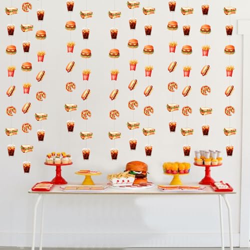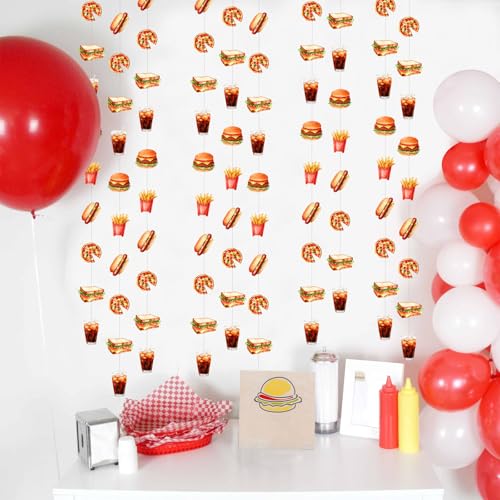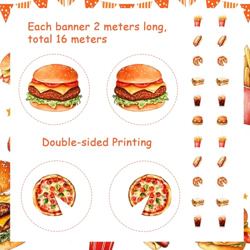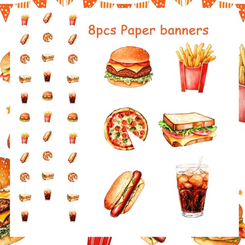 Cheereveal 8 Pieces Fast Food Theme Garland Streamers, Hamburger French Fries Hanging Ceiling Banners Junk Food Theme Birthday Baby Shower Party Decoration Supplies