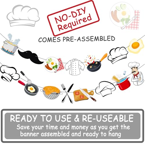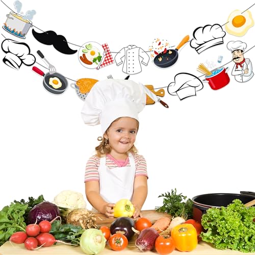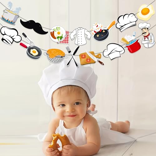 Chef Theme Party Banners Cooker Masterchef Birthday Party Decorations Cook Party Banner Garlands for Cook Kitchenware Birthday Party Cooking Baking Theme Party Baby Shower Supplies