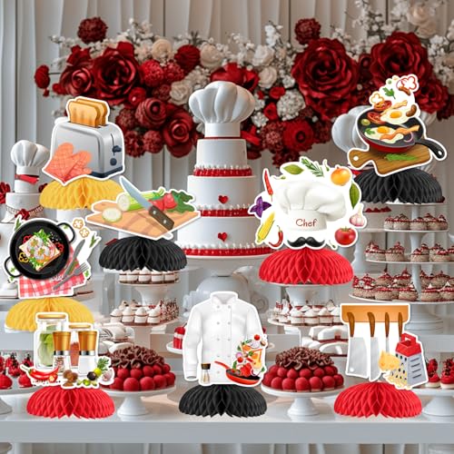 Chef Themed Party Decorations, 8pcs Chef Honeycomb Centerpiece Little Chef Masterchef Table Centerpieces for Chef Themed Birthday Cooking Baking Baby Shower Party Decorations