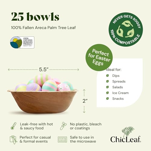 Chic Leaf Palm Leaf Bowls - Mini Disposable Bamboo Style Bowls for Weddings, Parties, Winter Tasting Events, Game Day Appetizers - Elegant Disposable Easter Tablewares (5.5'' Square - 25 Pack)