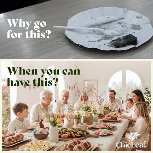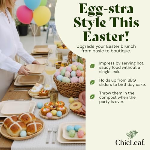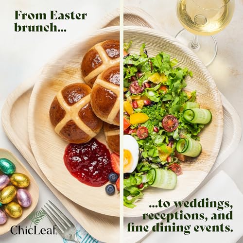 Chic Leaf Palm Leaf Plates 8 Inch - Disposable Bamboo Style Square for Winter Events, Rustic Dinner - Heavy Duty, Compostable Serving Dish for Appetizers & Dessert, Elegant Easter Tableware