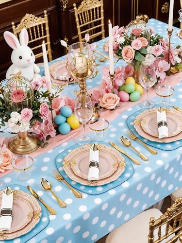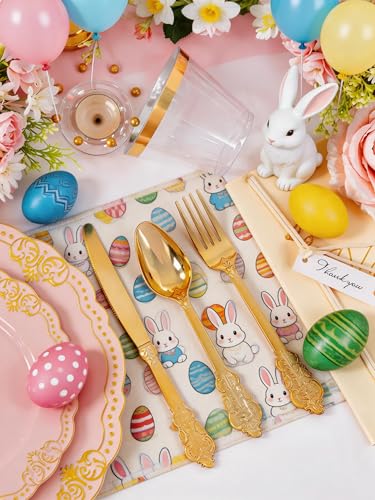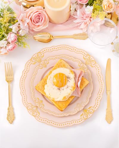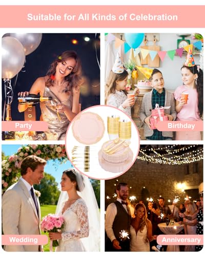 Ciaell 350 PCS Pink Plastic Plates - Pink and Gold Disposable Plates Include 50 Disposable Plate, 150 Heavy Duty Silverware, 50 Cups, 50 Napkins for Wedding & Party & Anniversary & Easter