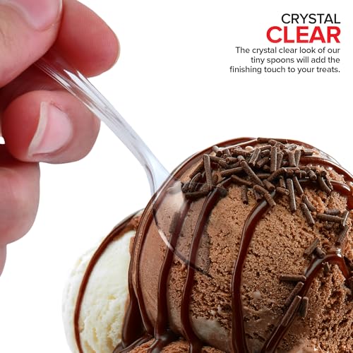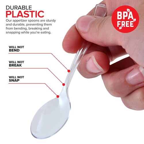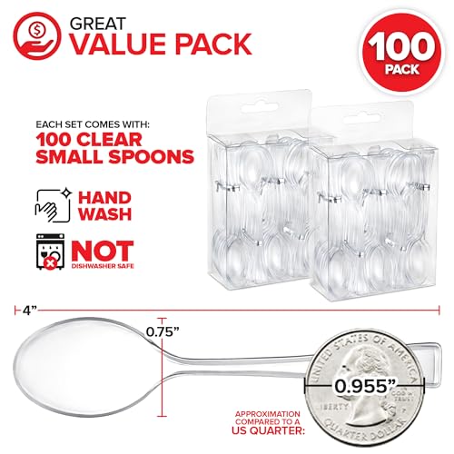 Clear Mini Spoons 4 Inch (100 Count) Disposable Appetizer and Dessert Spoons for Weddings, Food Samples, Holiday Parties, Cocktail Hour