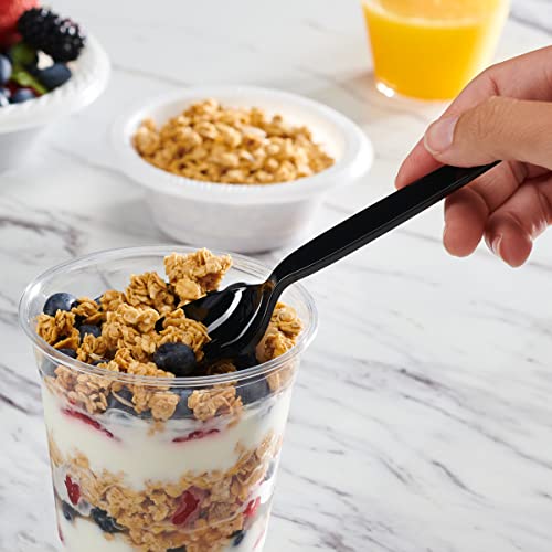 Comfy Package [100 Pack] Basic Black Plastic Spoons, Heavy Duty Disposable Utensils - Perfect for Parties, Events, and Dinner