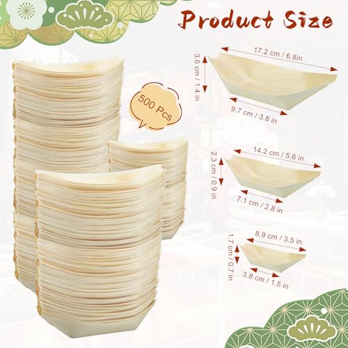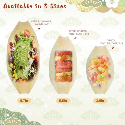 CONLI 500 PCS Bamboo Plates Disposable Wooden Boat Plates for Appetizers, Sushi Boat Serving Tray Food Container Bamboo Bowls Disposable for Catering, Home and Party